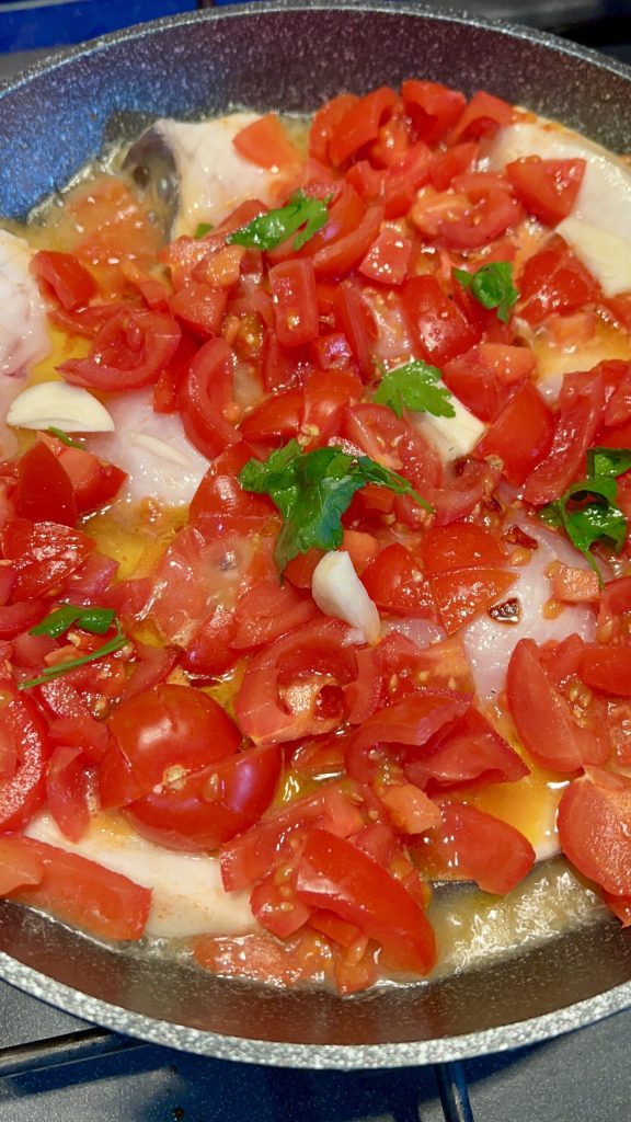 O resultado será um peixe-espada macio e saboroso, com um molho de tomatinhos reduzido ao ponto certo: perfeito para saborear com uma fatia de bom pão fresco para fazer “a scarpetta”!