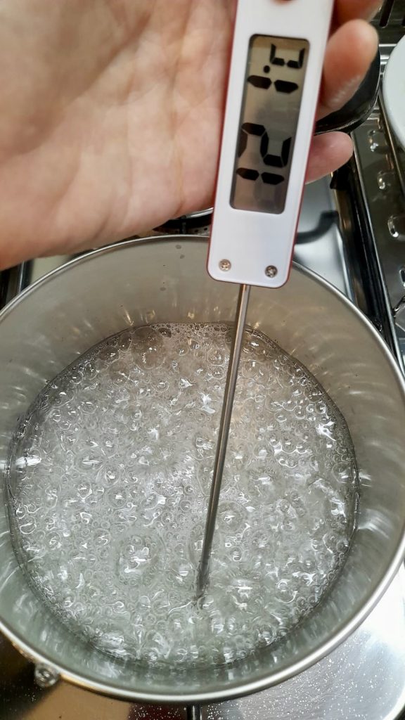 • O primeiro passo para preparar este tiramisù é preparar uma calda, coloque o açúcar e a água em uma panela e leve ao fogo mexendo de vez em quando, a calda deve atingir 121°C. Enquanto a calda cozinha, coloque as gemas em uma tigela.