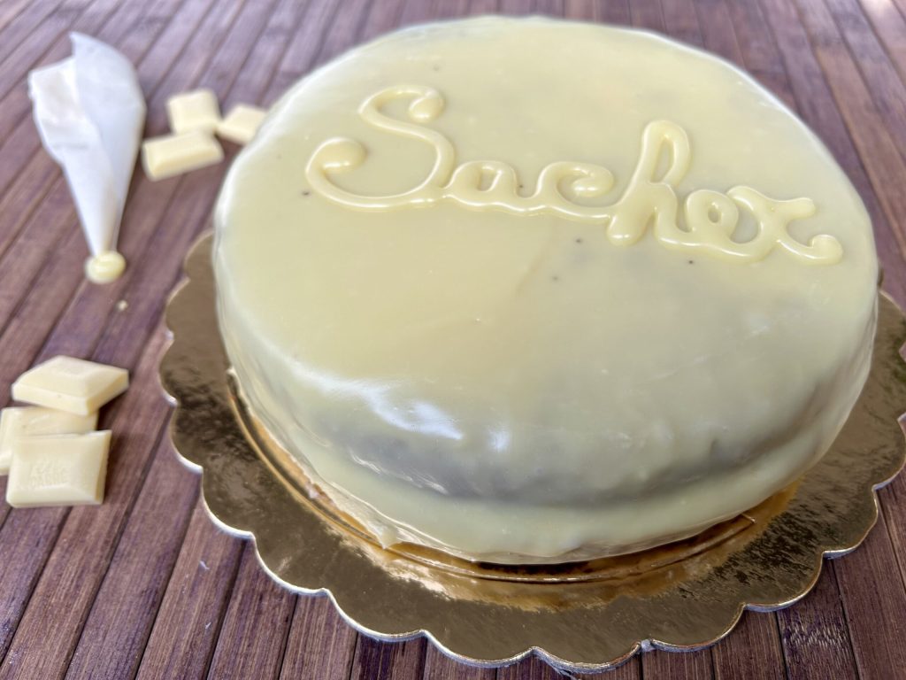 Sacher de chocolate branco uma alternativa válida ao clássico bolo Sacher, ainda assim muito macio e delicioso, se mantém bem à temperatura ambiente e agrada a adultos e crianças.