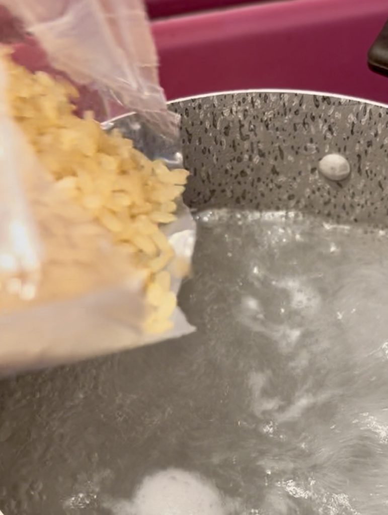 Quando a água ferver, adicione o arroz e cozinhe pelo tempo indicado na embalagem.