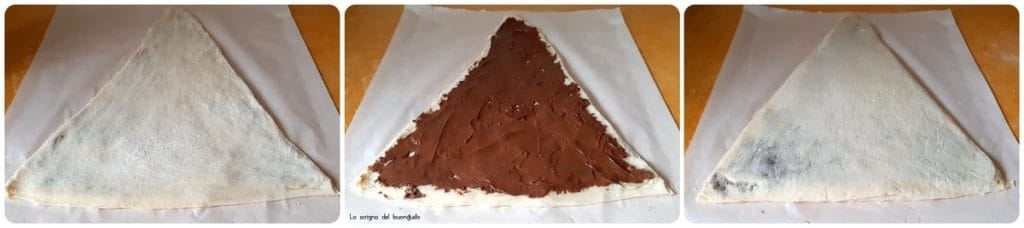Ponha este primeiro triângulo imperfeito sobre o papel e neste ponto, com uma faca ou cortador de massa, refile o triângulo em volta, para criar uma forma triangular.