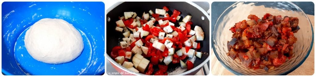 Em seguida, adicione o sal e o óleo e complete o trabalho, despeje a massa em uma tigela e deixe fermentar até dobrar de tamanho.Preparação do recheio
