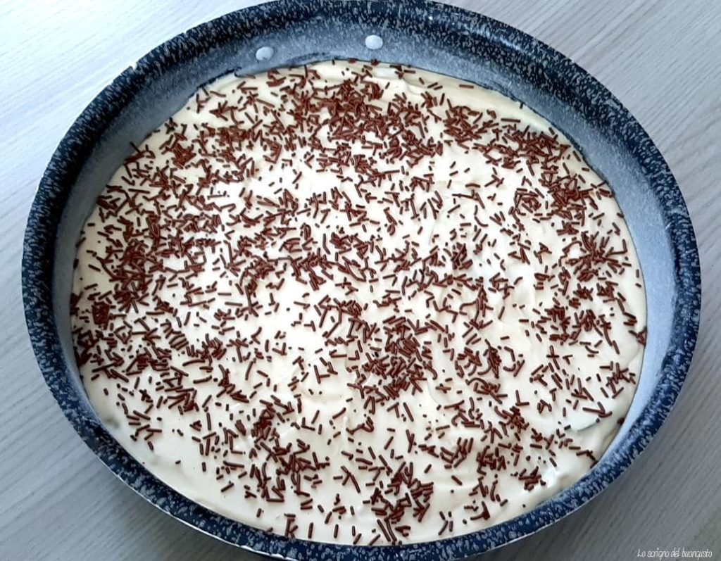 Decore com confeitos de chocolate ou outra decoração a gosto, asse em forno pré-aquecido a 180°C por 40-45 minutos, verificando o cozimento.