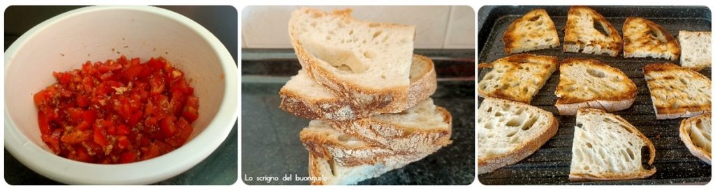 Nessas ocasiões, enquanto a carne cozinha lentamente na brasa, as bruschettas abrem a noite e desaparecem num instante.