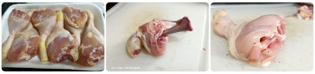 Pegue as coxas de frango e remova o osso deixando-as inteiras (se preferir, peça ao seu açougueiro para fazer isso).