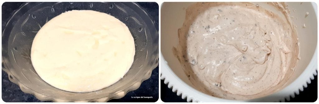Uma vez esfriado, coloque o mascarpone na batedeira, misture bem, depois adicione o creme misturando em baixa velocidade e, por fim, adicione o chocolate amargo picado.