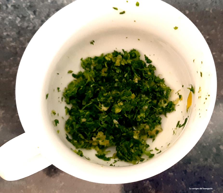 Enquanto isso, pique a salsinha e o alho e reserve.