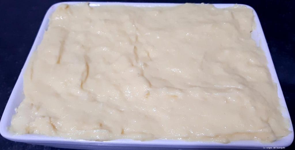 Após o cozimento, obteremos um creme espesso que será transferido para uma tigela resistente ao calor, cobrindo-o com filme plástico em contato com o creme.