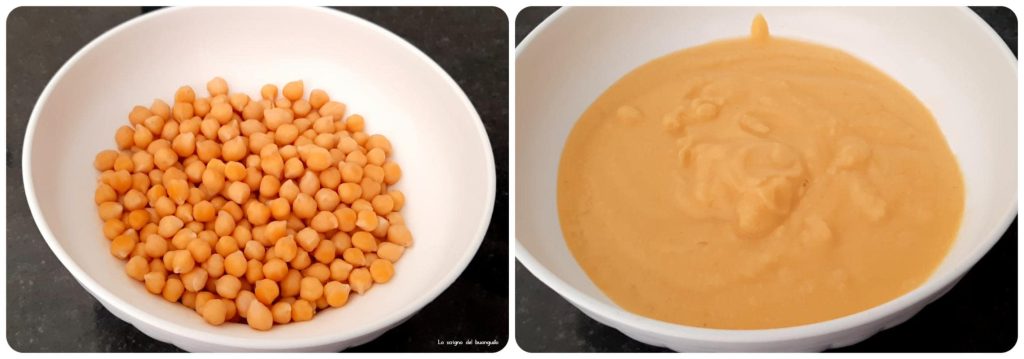 Uma vez colocados os grãos-de-bico já cozidos em uma tigela bem escorrida, bata-os no liquidificador até obter um creme o mais suave possível.