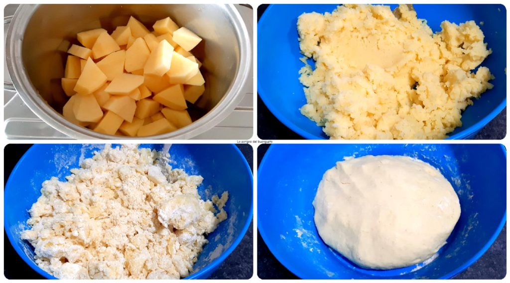 Deixe-as esfriar, depois crie a massa adicionando 1 ovo, o sal, o parmesão, a farinha e misture bem até formar uma massa macia.