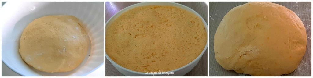 Após a fermentação, retire a massa e coloque-a sobre uma superfície de trabalho formando uma bola.