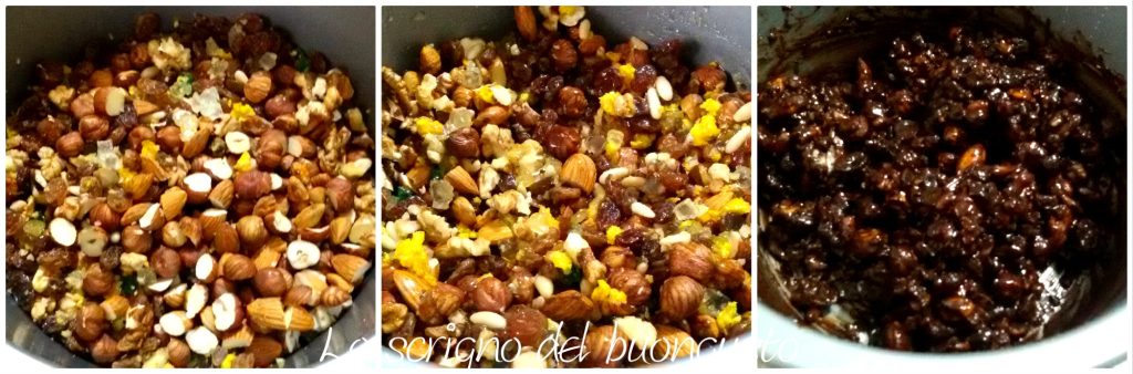 Depois de cortar as frutas secas, transfira-as para uma tigela, adicione também as frutas cristalizadas, as raspas de limão e laranja, escorra bem as passas e adicione-as à mistura.