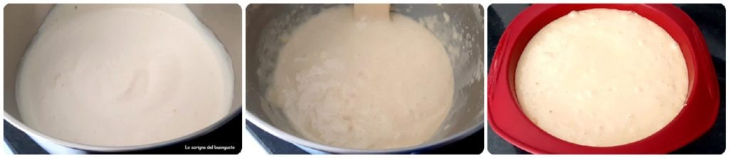 Depois de obter uma massa bem trabalhada e ter absorvido toda a farinha, despeje na assadeira untada e enfarinhada, ou em uma forma de silicone, para o nosso pão de ló.