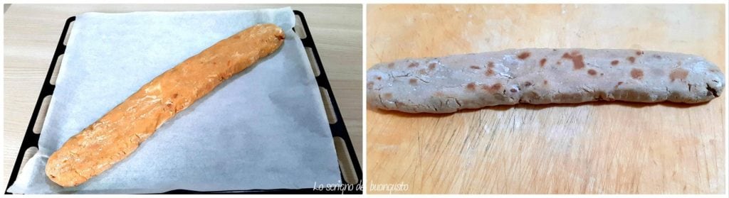 • Quando os ingredientes estiverem bem incorporados, crie um filão longo e estreito, forre uma assadeira com papel manteiga, coloque o filão e pressione ligeiramente.