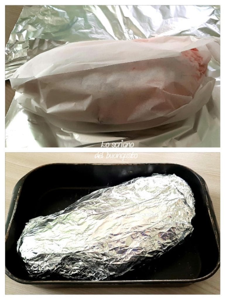 uma vez fechado, pegamos uma folha de papel alumínio e o envolvemos todo até cobrir completamente.