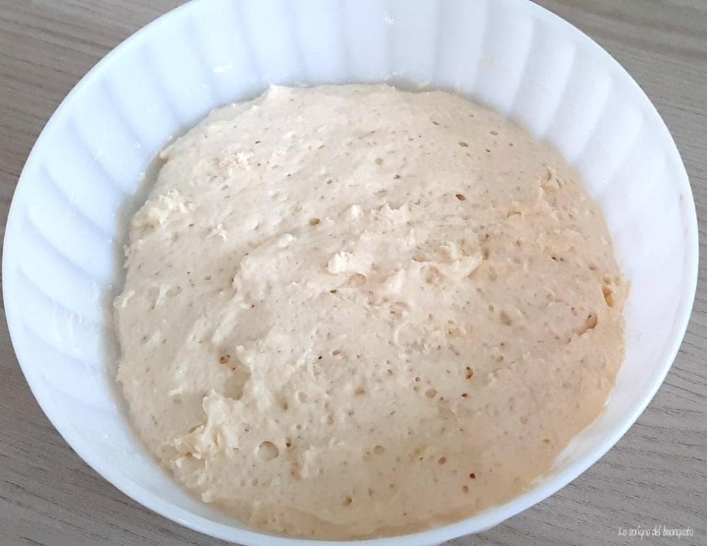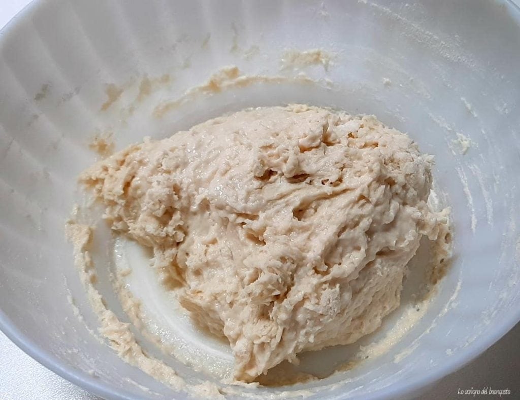 Adicione a farinha restante para obter uma bola macia e depois deixe-a fermentar por pelo menos 2 horas.