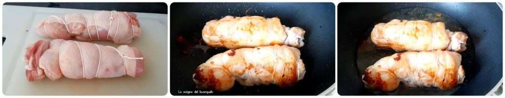• Uma vez bem dourados, adicione vinho branco, cubra e continue a cozinhar por pelo menos 30 minutos, verificando o cozimento.