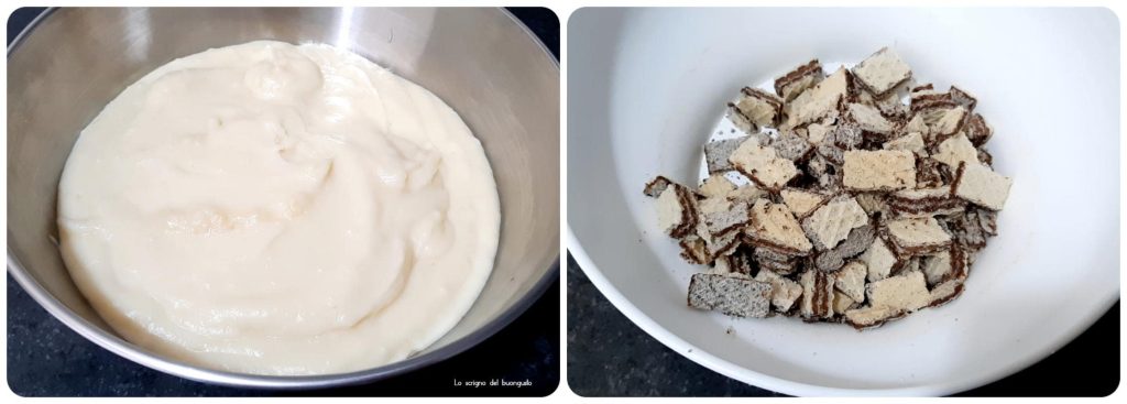 Pegue os wafers e corte em pedaços para um peso total de 60 g e reserve.