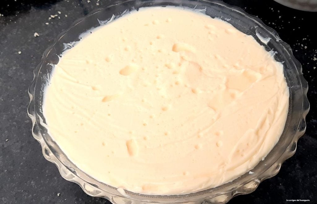 Molhar o disco que servirá de base com o rum diluído com água, fazer uma camada de creme e colocar o segundo disco, molhar o segundo disco e adicionar outra camada de creme.