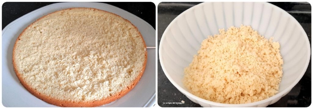 …..deixar sobre o prato o disco que servirá de base e ralar com um garfo, de forma a obter migalhas, deixando a borda e reservando para a cobertura.