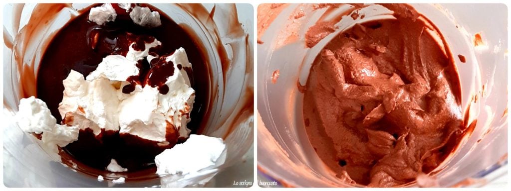 Deixe esfriar por 4-5 minutos, depois transfira a mistura para um recipiente alto e estreito e com a batedeira misture um pouco o creme obtido, apenas alguns segundos.