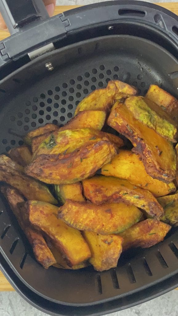 Abóbora temperada na fritadeira elétrica, um acompanhamento de outono que une sabor, leveza e rapidez de preparação, perfeito para quem ama a cozinha saudável mas não quer abrir mão do sabor.