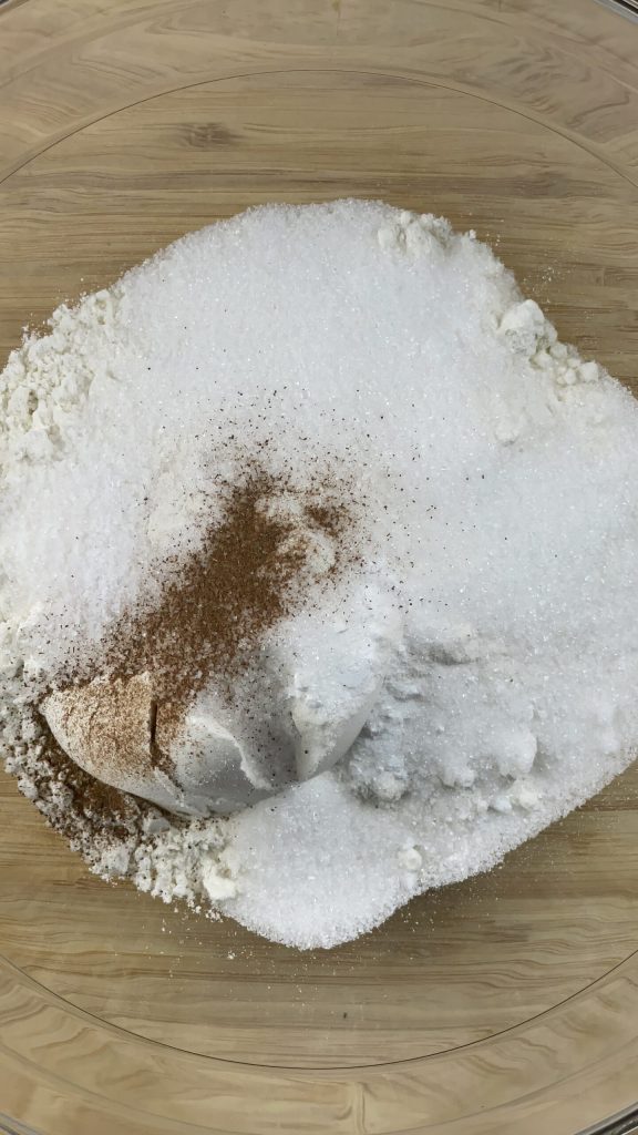 Deixe de lado por enquanto.Prepare o açúcar de cobertura adicionando a 50g de açúcar refinado uma colher de chá de canela em pó.