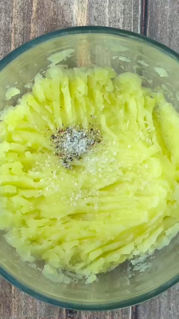 Deixe esfriar um pouco e reduza a purê usando um espremedor de batatas.Tempere as batatas amassadas com sal e pimenta-do-reino.