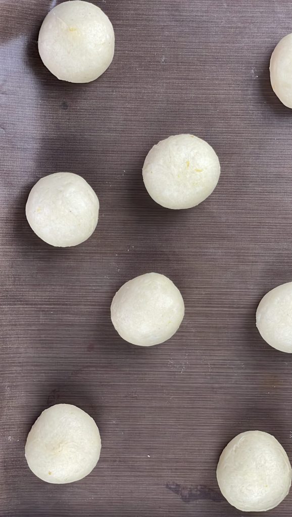Dê a cada pedaço de massa uma forma esférica.