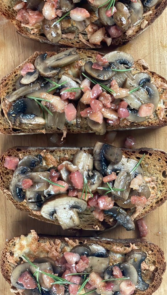Bruschettas com cogumelos e bacon crocante – entrada fácil e saborosa