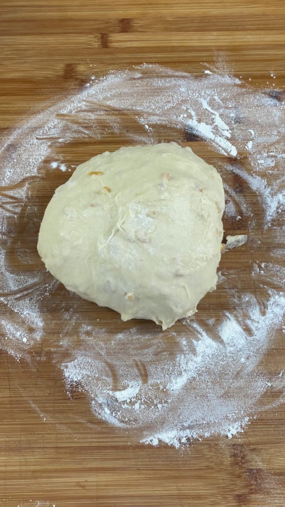 Trabalhe a terceira massa até que esteja bem ligada no gancho, depois transfira para a superfície de trabalho e dê-lhe uma forma esférica. Deixe crescer por pelo menos 2 ou 3 horas.