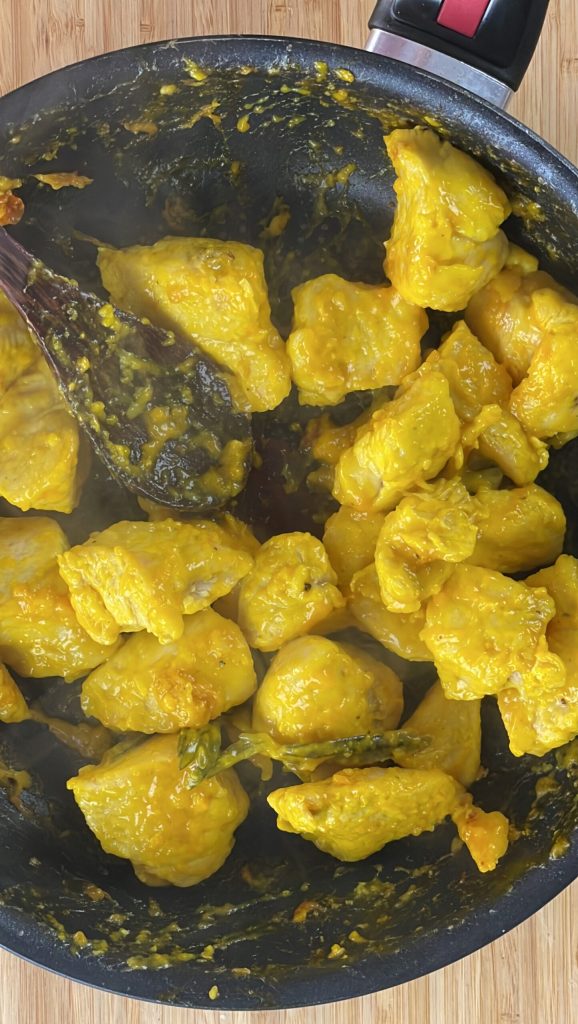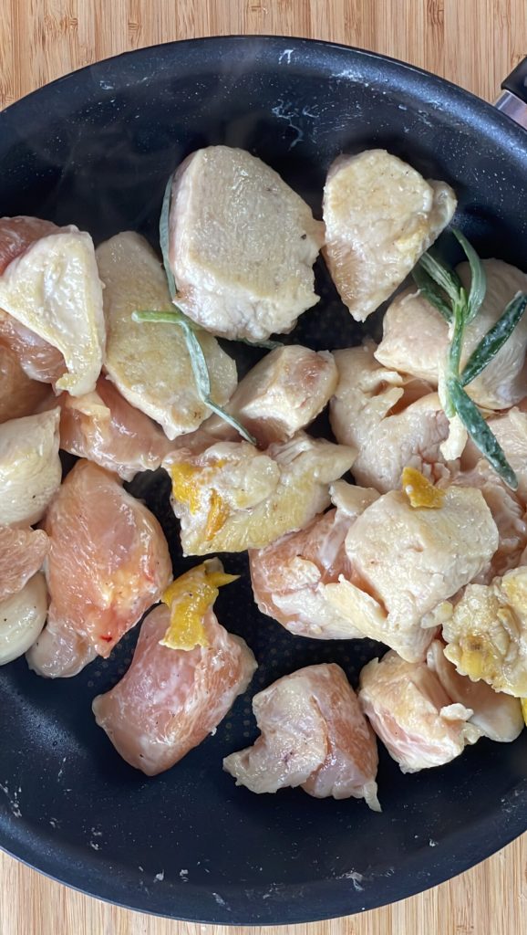 Preparação do frango ao limão e açafrão