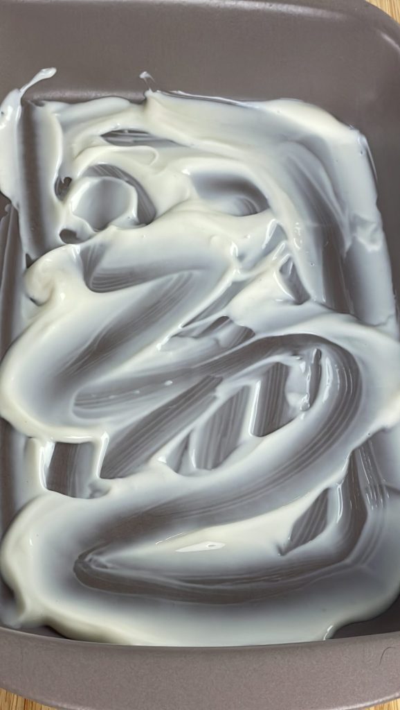 Escorra e seque com um pano de prato.Distribua um par de colheres de molho branco em uma travessa (encontre minha receita AQUI).
