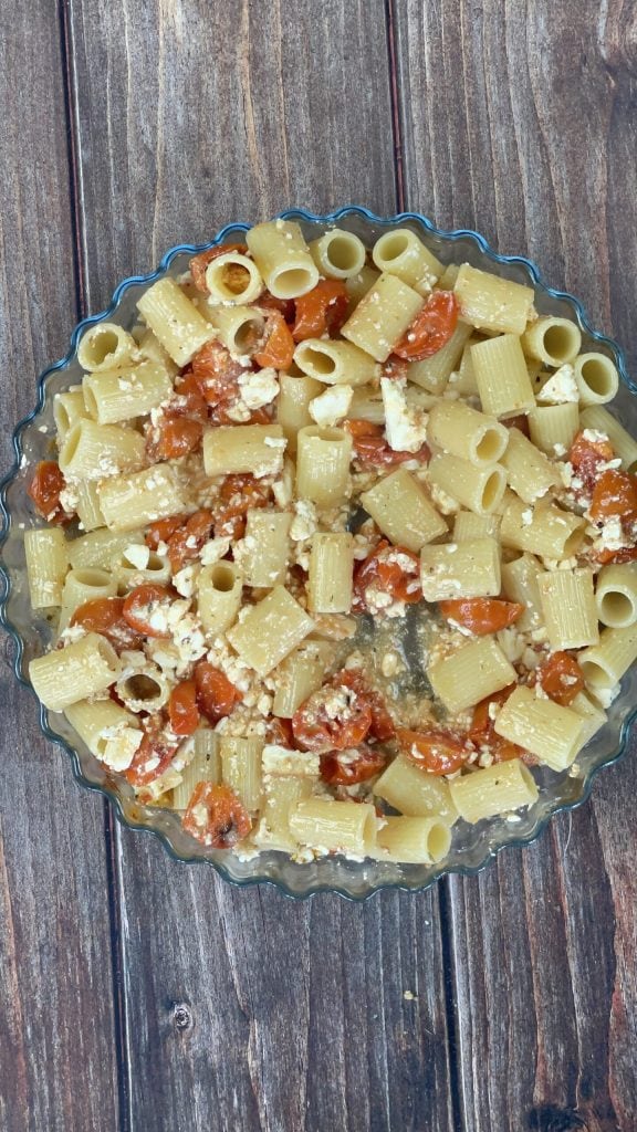 A massa com feta e tomatinhos é uma receita muito simples que vai te dar grande satisfação: o preparo é acessível a todos, é deliciosa e personalizável de acordo com o seu gosto. Na minha receita, adicionei amêndoas em lascas que dão ao prato aquela parte crocante que é fundamental para mim. Como erva aromática, escolhi manjericão, mas você é livre para usar salsinha, cebolinha… ou nem adicionar esse componente.