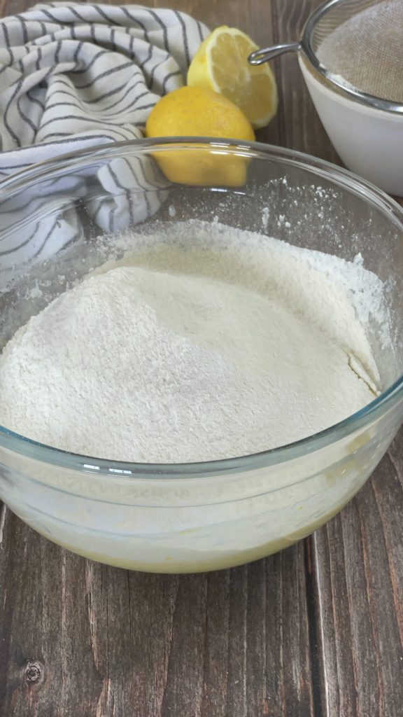 Uma vez obtida uma mistura homogênea, coloque na tigela também o suco e as raspas de um limão não tratado, o leite e o óleo de girassol.