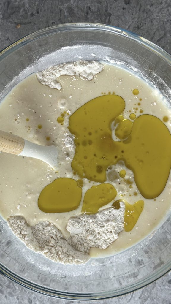 • Adicione o ovo, o leite e o azeite.