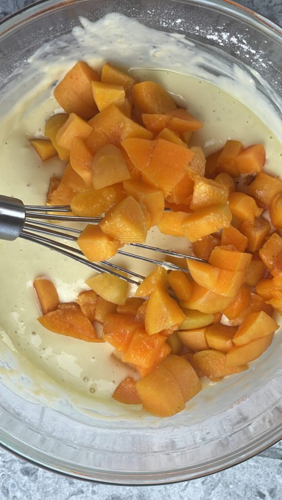 Misture bem para distribuir os damascos de forma homogênea na massa.