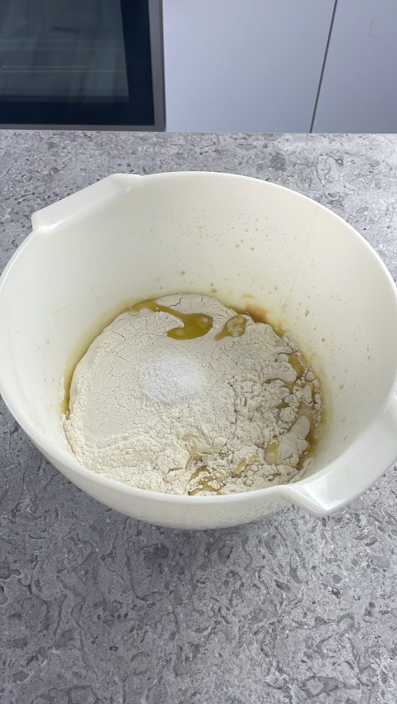 Conclua com as farinhas e o sal.