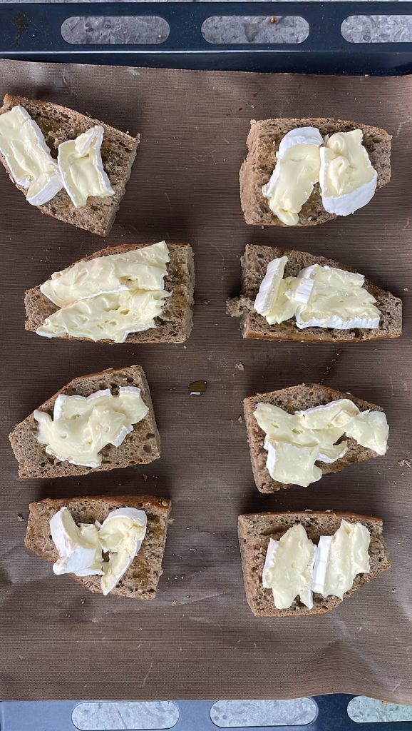 Pão torrado com camembert, presunto cru e cebolas ao balsâmico: uma entrada cremosa, saborosa e rápida de preparar, perfeita para um jantar refinado ou um aperitivo elegante.