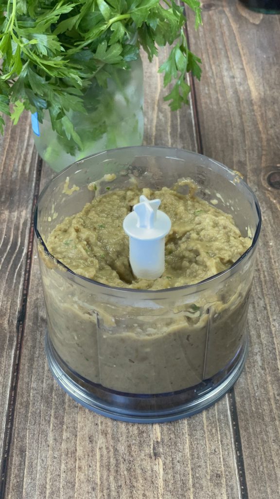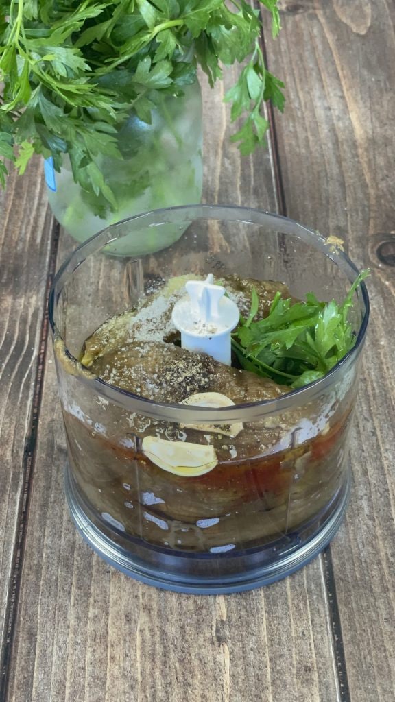 Em alternativa, você pode assar as berinjelas em forno tradicional a 220°C por cerca de 1 hora.Depois de esfriar, descasque as berinjelas e coloque a polpa em um liquidificador.
