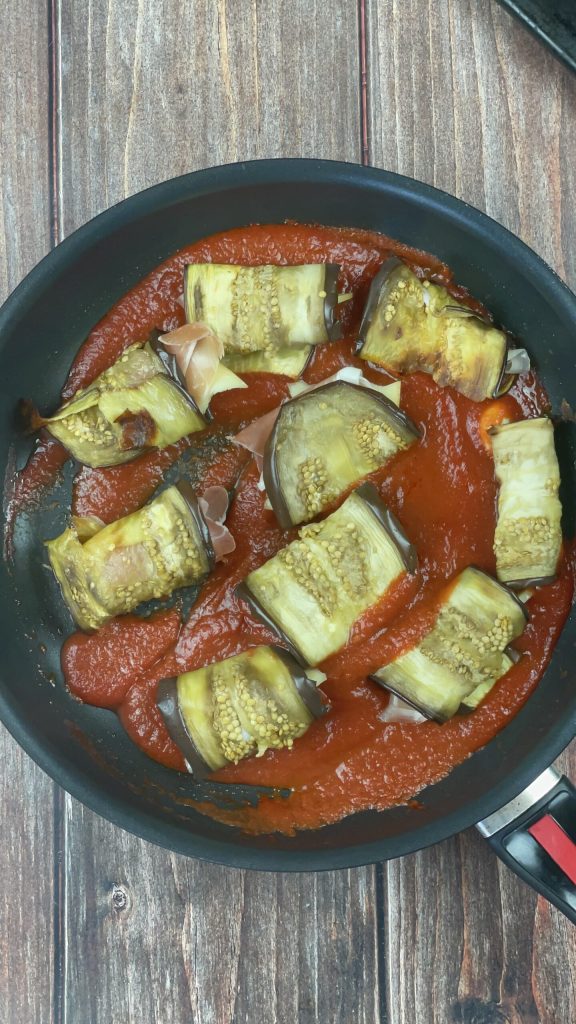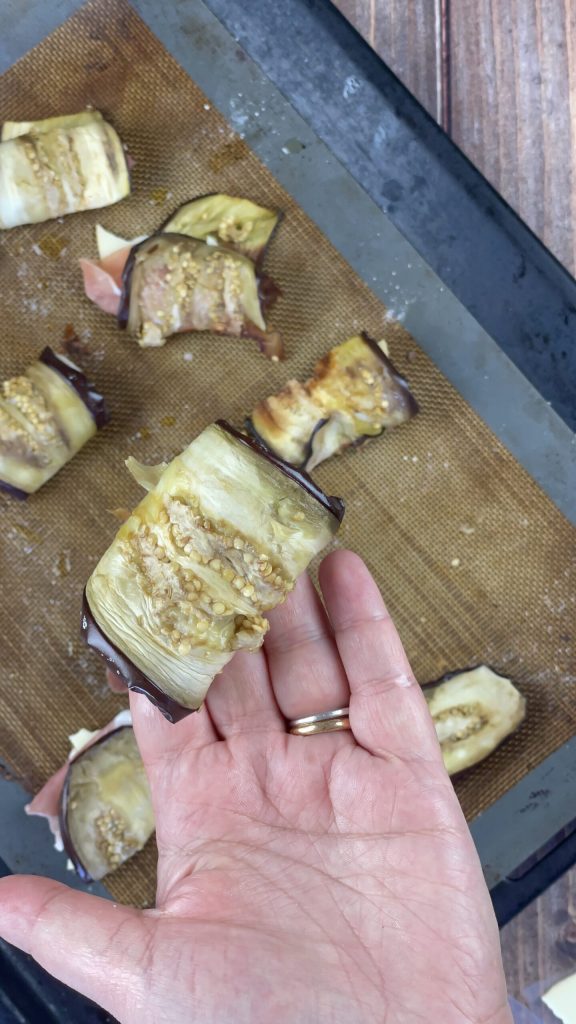Os rolinhos de berinjela são um delicioso segundo prato: são berinjelas assadas recheadas com presunto cru e provolone e temperadas com molho de tomate; podem ser acompanhados por uma salada ou servidos sozinhos como entrada.