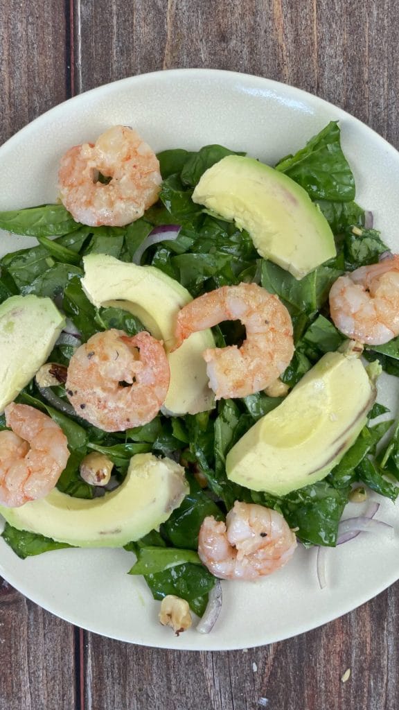 Esta salada é uma ótima escolha para quem procura uma refeição equilibrada, rica em nutrientes e sabores. Os camarões são uma fonte de proteínas magras, vitaminas (especialmente B12) e minerais como zinco e selênio, enquanto o abacate é rico em gorduras saudáveis (ácidos graxos monoinsaturados), fibras, vitaminas (E, K, C, B) e potássio.