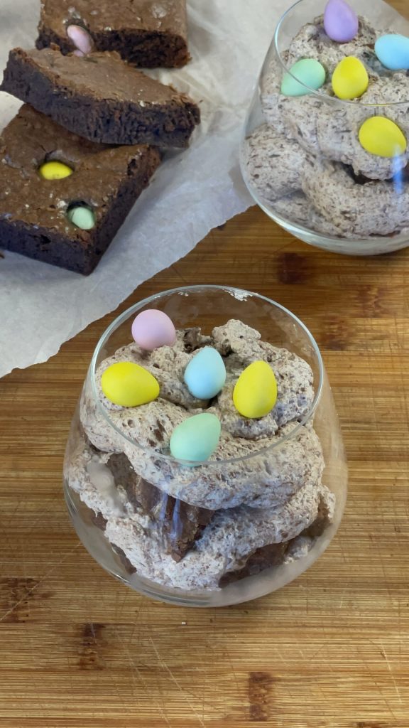 Sobremesa de brownies e ovinhos para a Páscoa, receita de uma sobremesa de colher cênica, mas simples ao mesmo tempo. Se você adora sobremesas de chocolate, certamente conquistará seu coração.
