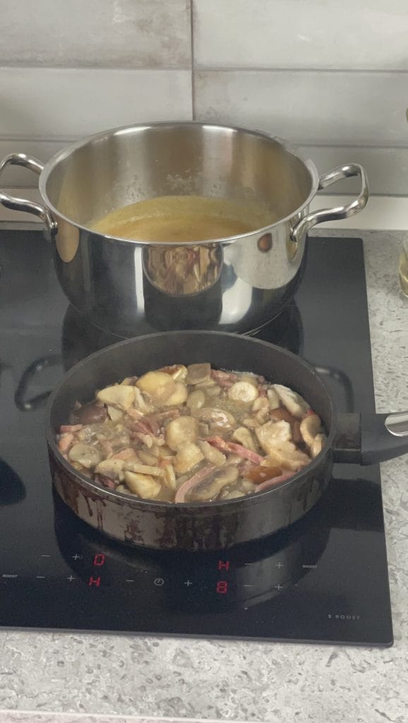 Os feijões cannellini são conhecidos por sua doçura e maciez, e se misturam perfeitamente com os cogumelos, que adicionam uma nota terrosa e umami. O speck, por sua vez, traz aquele toque saboroso e defumado que completa perfeitamente a receita.