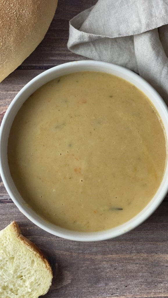 Bata a sopa com um liquidificador de imersão: escolha a consistência que preferir, pode bater completamente ou deixar alguns pedaços para uma textura mais rústica.