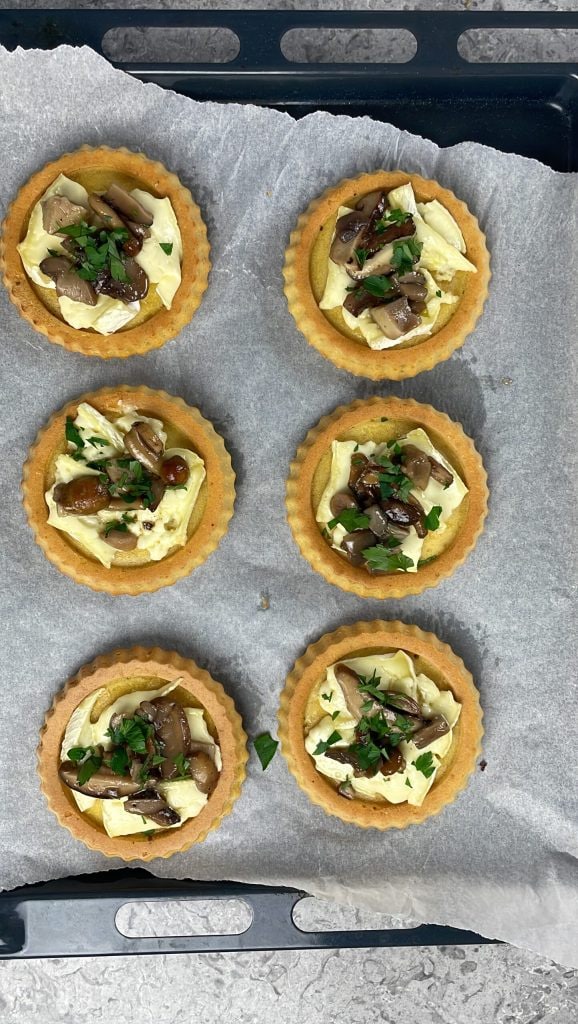 Adicione os cogumelos às tortinhas e decore tudo com salsinha fresca picada.