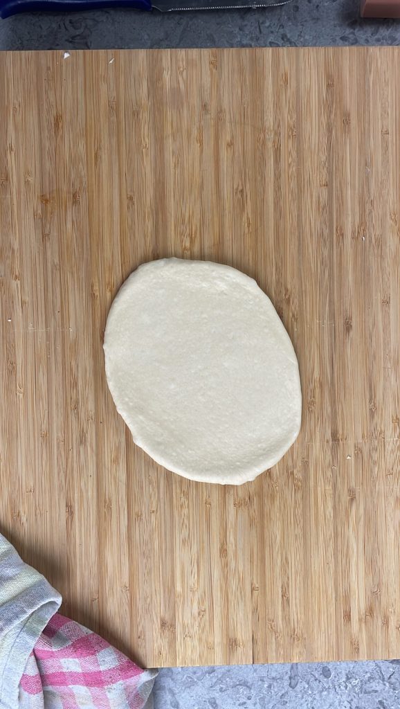 Coloque todas as bolinhas em uma bandeja ou assadeira enfarinhada ou coberta com papel manteiga e deixe crescer cobertas com um pano de prato por mais uma hora.Estenda cada bolinha de massa com um rolo em uma espessura de 3-4 mm