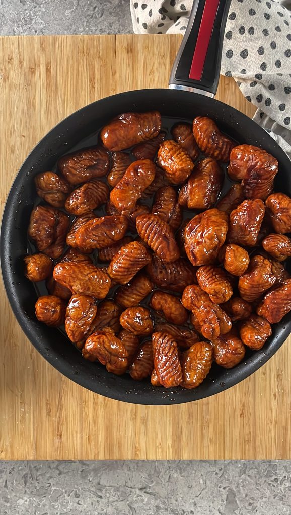 Se preferir, pode usar a fritadeira, configurada a 170°C e fritar até que estejam bem dourados.Aqueça o mel de figo em fogo muito baixo em uma frigideira funda ou panela até que fique fluido o suficiente