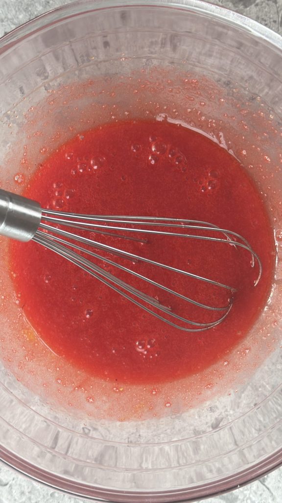 Adicione o corante vermelho; para não comprometer a consistência da massa, recomenda-se usar um em pasta ou gel.