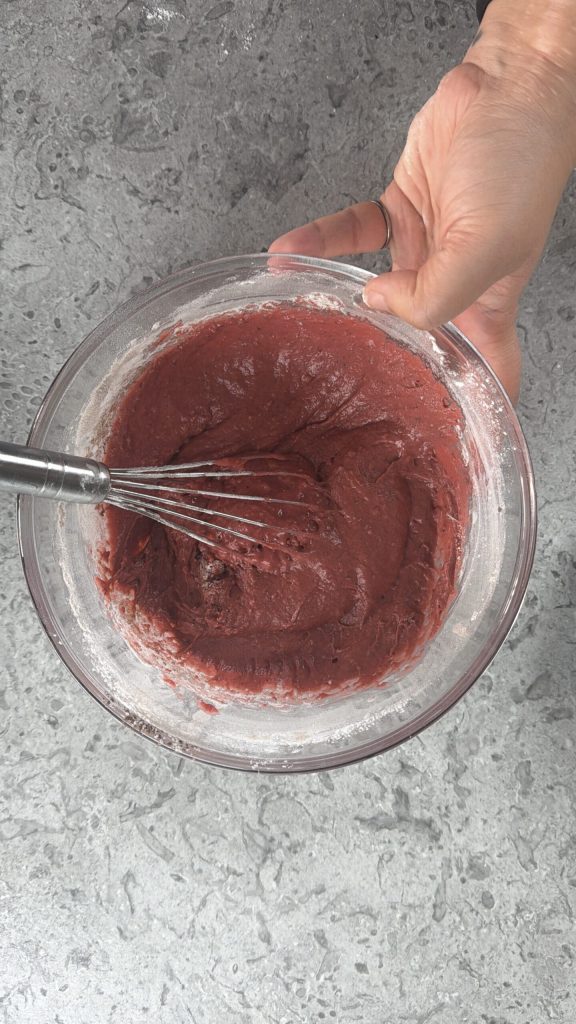Preparar esses waffles é surpreendentemente simples: são necessários poucos ingredientes básicos como farinha, ovos, manteiga e buttermilk (ou leite) e um toque de cacau para realçar o sabor. O corante vermelho confere o característico efeito ‘red velvet’ que os torna perfeitos também para ocasiões especiais ou para impressionar as crianças no café da manhã.